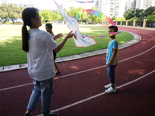 在“美术不止画画”课堂上,每个小朋友都获得了一只白色的风筝,谭斯方小老师和刘亚菲小老师带领同学们在白色的风筝上描绘勾勒。不一会儿,一只只白色的风筝仿佛被赋予了生命,绽放出与众不同的光彩。下课后,老师带领同学们将亲手画的风筝在运动场放飞。看着承载着大家梦想的风筝高高飘扬,小老师们和同学们的脸上都洋溢出幸福的笑容。