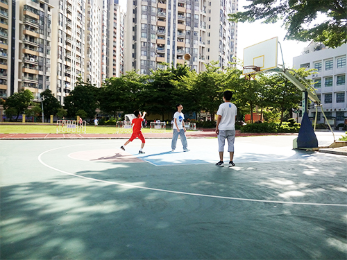 接着,让我们把镜头转向篮球场。“哇!好球!”伴随着一阵欢呼和掌声,篮球在空中划过一道美丽的弧线,稳稳地落入篮筐中。原来是徐佳滨老师和曾梓健老师在和小朋友一起打篮球。别看小朋友们个头小,球技可一点不输两个大哥哥呢!看他们娴熟地运球、传球、投篮,配合得多默契!