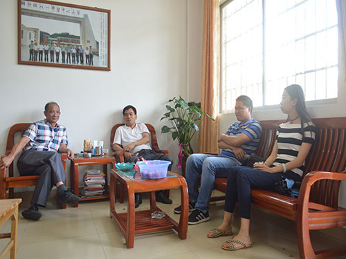 接着,麦书记和朱校长对于服务队调研课题进行了讨论并展开了深入交流。麦书记强调广宁排沙镇八一希望中心小学有浓厚的革命文化氛围,应该把握这一有利条件和基础,提高调研的高度,做好对孩子的文化引领,考虑如何在多元的现代环境下对孩子传播红色文化,让孩子们继承红色文化。朱校长也提出广宁排沙镇作为革命老区,有浓郁的风俗历史,强调了传承红色文化的重要性。麦书记建议从现状、问题和对策三方面考虑,围绕小学生关于红色文化传承的思考这一中心,与“我的中国梦—励志修身,博学报国”主题教育系列活动相结合,展开一次有现实意义和实际价值的调研活动。