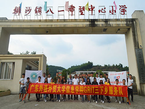 今日下午3:30分,我院领导到达排沙镇八一希望中心小学,前来慰问“GRIT”三下乡队伍,虽然天气炎热,但在领导们到来之际,天下起了小雨,让人感受到了一丝的清凉。领导们与三下乡队员进行亲切的慰问后,给队员送来清凉饮料。随后广宁排沙镇八一希望中心小学校长对我院领导表示热烈欢迎,在轻松融洽的氛围当中,双方进行了简单的问候。