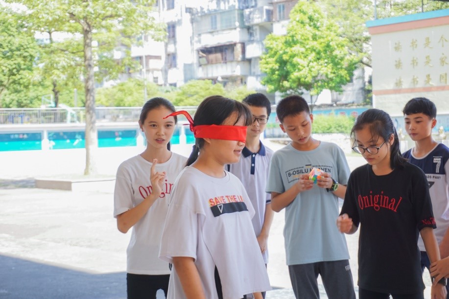 下午两点半,队员们带领同学进行了定向越野活动。在班主任老师讲解完游戏规则之后,活动正式开始。同学们分为六组进行比赛,分别由六名调研组队员带队,依次完成各项游戏——“套圈”、“踢毽子”、“一见你就笑”、“猜拳”、“信任游戏”以及“运乒乓球”。在各项游戏面前,同学们毫不怯场,勇于担当游戏主力,团结协作,与游戏裁判员斗智斗勇,为团队得分出一份力。一些通关较快的队伍,甚至率先完成了附加题,在团队得分上遥遥领先。最后,工作人员认真计算各队得分,并举行了颁奖典礼,为优秀个人及优秀团队颁发奖状。