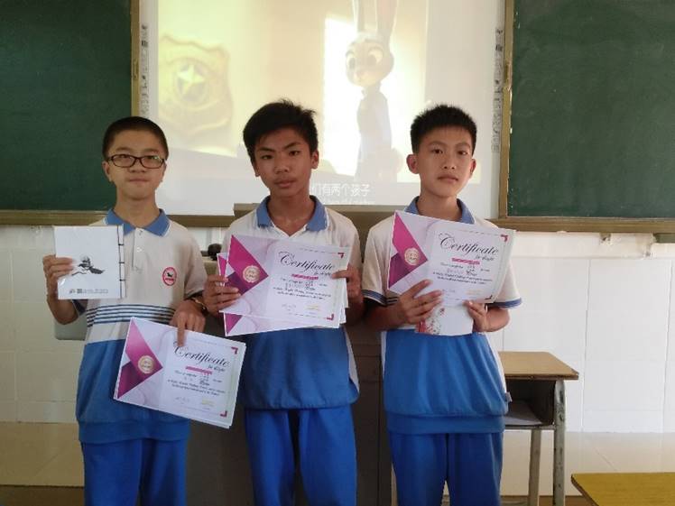 本网讯7月15日下午,Light全英服务队于曲江第二中学成功举办英语配音比赛。比赛节目有精彩绝伦的《小黄人》、《冰雪奇缘》等动画电影以及满含哲理的《Room》等影片。本次比赛由包括辜佩琪老师、陈思欣老师等在内的八位义教组组员以及队长江凤婷担任评委。经过激烈角逐,张满银、刘坤荣和刘智聪获得本次英语配音比赛第一名以及最佳人气奖。