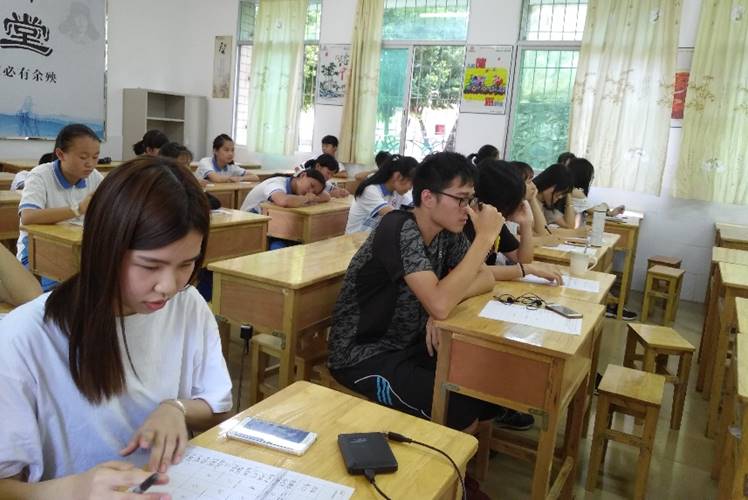 作为Light全英服务队三下乡的特色活动之一,英语配音比赛从一开始便受到学生们的热捧。学生们在义教组那里挑选配音片段后,利用课余时间反复练习,他们各自的导师也不厌其烦地帮助他们纠正发音、教他们如何拿捏语气语调语速。