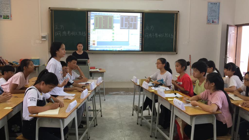 地理课上,老师简单地介绍了十大地质奇迹的概况和地理现象,然后通过你画我猜画各个国家的代表建筑来加深学生们的印象。辩论课上,班主任先教学生们该如何辩论,之后便给了一节课的时间,开展辩论赛,让学生们学以致用。初次接触辩论的学生们刚开始虽然表现得不够理想,但后来慢慢进入佳境。最后反方以较强的逻辑赢得了此次比赛。