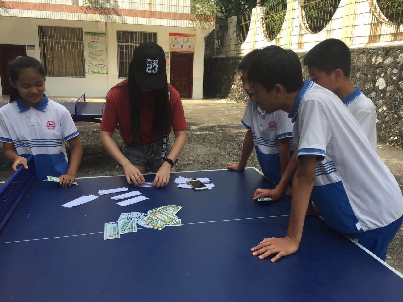 本网讯7月16日下午,在义教组的组织下,同学们参与了别开生面的英语跳蚤市场活动。在该活动中,共有25名同学报名作为卖方,16名同学作为买方。卖方同学在摊位等待,买方学生通过在游戏区赚取游戏币后,前往摊位进行购买。学生用自己的手工作品进行模拟交易,在此过程中他们必须用英语交流,丰富文化生活的同时也锻炼了他们的英语交际能力。
