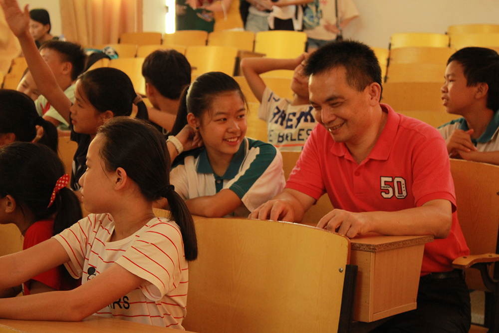 在随后召开的座谈会上,队员们首先进行了自我介绍。林绍雄表示,他们专程过来慰问三下乡队员,希望能够与队员们交流经验。他肯定了队员们为三下乡所付出的努力,对他们辛苦的劳动表示关切。随后他分享了曾参与下乡的故事和真实感受,并对队员们提出了为以后教师生涯打下基础的期望。最后,林书记强调,三下乡难能可贵的意义在于独立承担责任,相信同学们的精神境界能得到很大的提高,也能收获许多回报;相信同学们会保持这种良好的精神状态,不断总结经验教训,带给孩子们更多的欢乐体验。徐昶斌表示,作为广外第一支来到这里的队伍,万事开头难,他明白大家三下乡很不容易,希望大家在剩下的几天能够继续发扬能吃苦的精神,坚持下去。何洁铵虽然身体不舒服,但还是坚持过来一同慰问三下乡的队员们。他一直关注、参与并且支持着三下乡工作。他分享了自己的故事,也总结了自己的三下乡经验,给队员们很多启示。