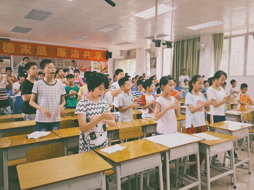 12点30分,爱飞翔“薪火起航”服务队的志愿者们到达穗石小学,开设了科学讲堂向学生们科普健康知识,同学们听得津津有味,踊跃举手回答主持人张老师提出的问题。
