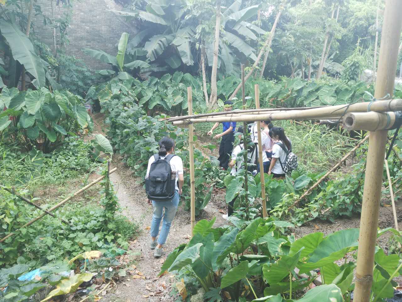 接着,关先生带领调研组同学们前往祠堂大厅,由于荒废已久,前往该大厅的路已经杂草丛生,但调研组同学们“披荆斩棘”,依旧对该大厅进行了参观。