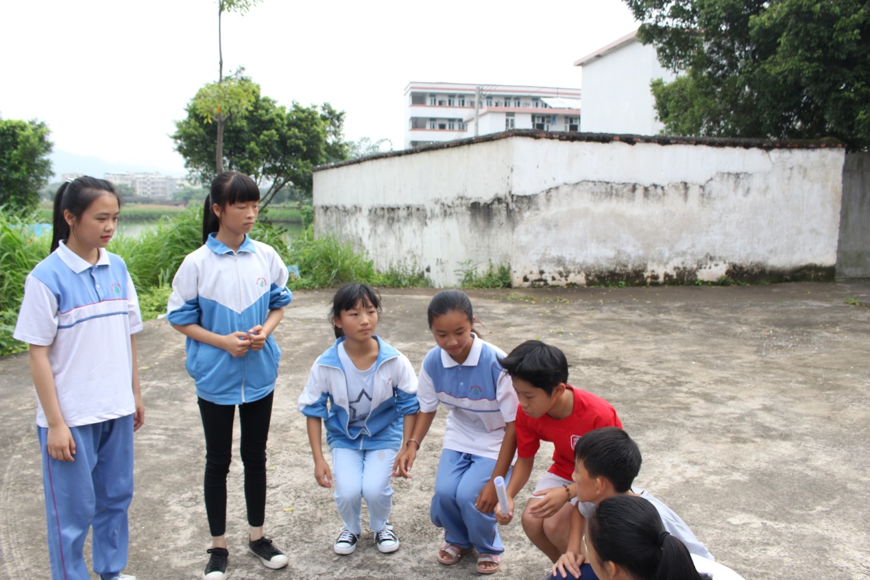 孩子们的表现远远超出了队员的预期,他们很快就完成了游戏点的游戏,取得了全部线索。各组争分夺秒地按照线索寻找“明德尚行,学贯中西”八个字,但最终只有第二组集齐全部字,获得本次定向越野的第一名。其他小组通过第二轮游戏——猜拳一字马和贴膏药,继续进行比赛。精彩激烈的角逐之后第六组取得了胜利,获得本次比赛的第二名。比赛最后,情之程队员们和同学们进行了大决战——拔河比赛。出乎所有人意料,姜还是“小”的辣,同学们在四场比赛中以三比一的比分大获全胜,队员们只能苦笑着感慨实力不敌这群“八九点钟的太阳”。上午的课程临近结束时,队员们和同学们合唱歌曲《和你一样》,场面温情满满。歌声是翅膀,唱出了希望,所有的付出只因爱的力量。