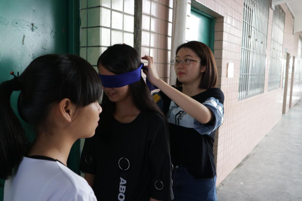 所有同学都抵达终点后,队员们便引导同学们返回本班课室,并组织他们进行活动后的感想分享。“蒙上眼睛之后我感觉成了一个老人,需要扶着走路。”同学们积极地分享了自己的体会。“我觉得我的小伙伴很可靠,她一路上的描述都很准确,所以我都没有碰到障碍。”尽管在活动中,同学们由于视线受阻有过不安与害怕,但因为有了小伙伴的支持与鼓励,才能放心、勇敢地迈开脚步。本次活动不仅拉近了各班同学们之间的距离,增强了同学们之间的友谊与凝聚力,而且使同学们更加认识到了拥有眼睛,能够看见光明的重要性。