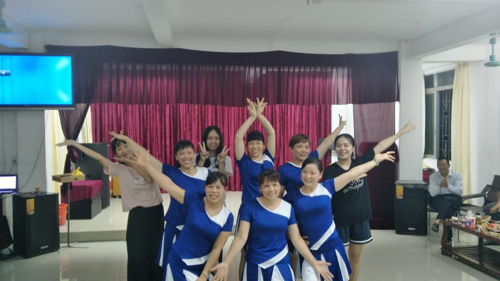 嘻牛记队员梁秀庭、张楚伦、庄璐与舞蹈队合照