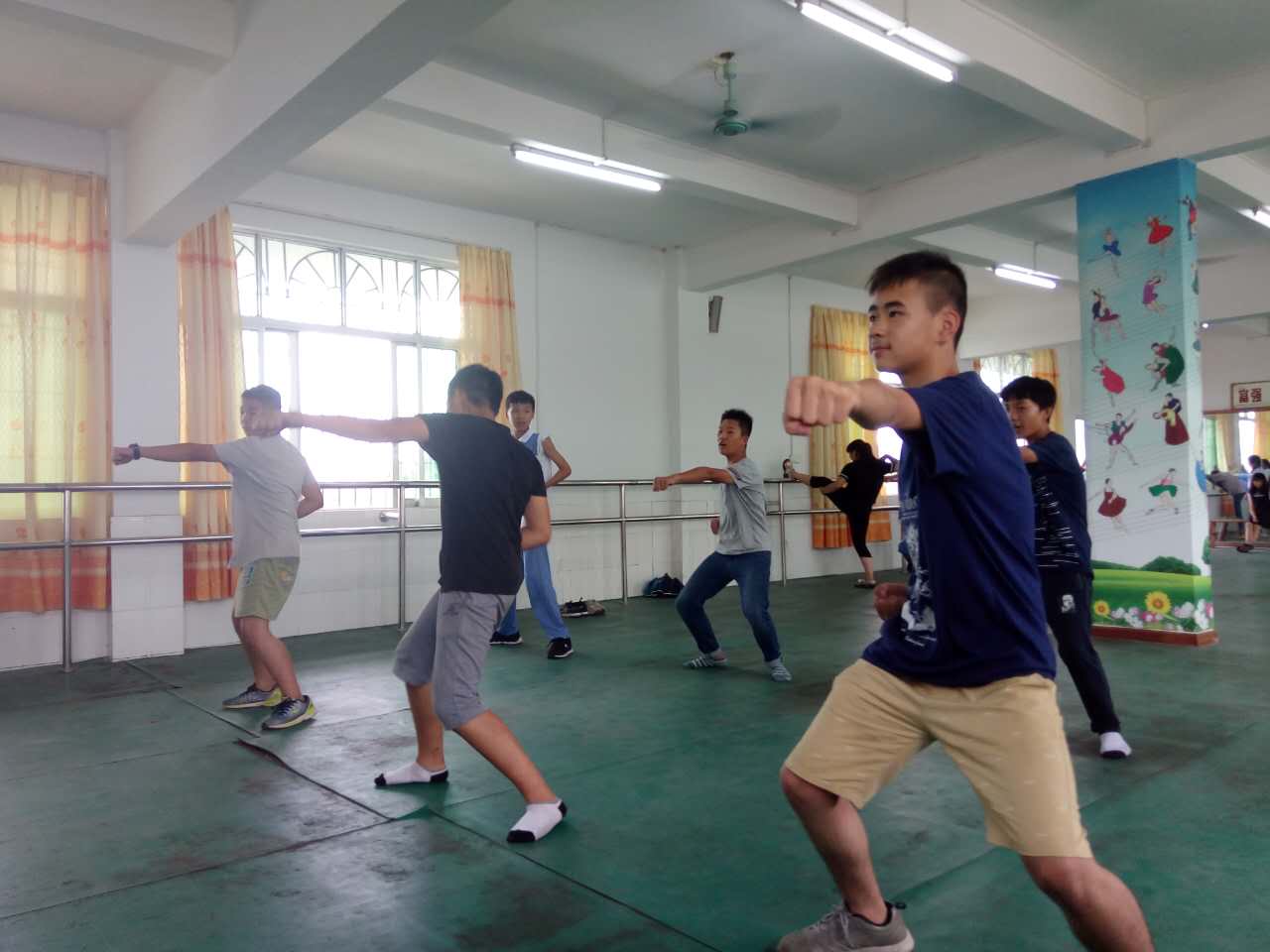 男生们在练习跆拳道的基本动作