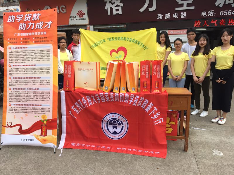 就在义教组在教室里挥洒汗水的同时,助学贷款组和调研组正在校外奔波,他们兵分两路,有的趁着大塘的赶集日到大塘市场,摆摊宣传助学贷款,派发问卷,促进了我国助学贷款政策的宣传。有的前往曲江区教育局,拜访了姚秀霞科员,了解助学贷款的开展情况。