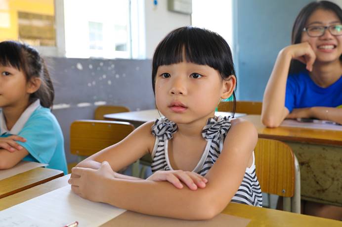 本网讯2017年7月17日,小飞船班队在中山市博爱小学的第7天,第二个大雨滂沱的日子。但是丝毫没有减退小朋友们来博爱小学参加夏令营的热情。早上7点45分就已经有一大波小朋友等候在门口,一个个小手攀着栏杆,好像想着要在第一时间冲向教学楼。老师们早已在教室内等候小朋友们的到来。小朋友们一进入课室马上坐好进入学习状态,用响亮的读书声开启一天的学习旅程。