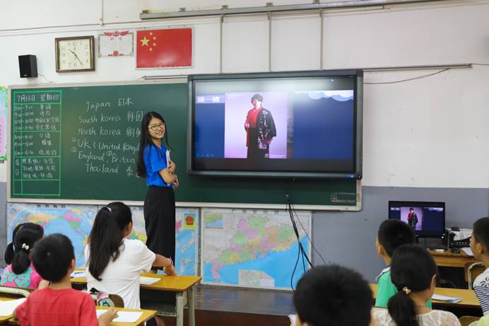 西西老师在给小朋友们展示日本的饮食文化