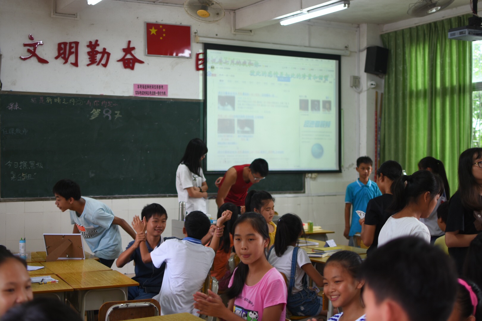 本网讯2017年7月18日,到今天为止,三下乡已经进行了八天了。最后一天是“期末考试”和总结会,所以今天的六节课就是新晴最后的课程了。带着不舍,“新晴之约”的队员们开始了最后一天的义教课程。