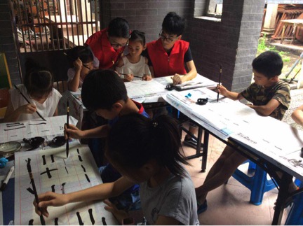 本网讯7月18日上午9点30分,我校爱飞翔·薪火起航服务队义教组书法小组来到贝岗村委会,为共计十余名同学带来了第一堂内涵丰富的书法课程。针对作为中国国粹之一的书法,本次义教活动将安排每周二、周四上午9:30-11:00为同学们提供书法教学。