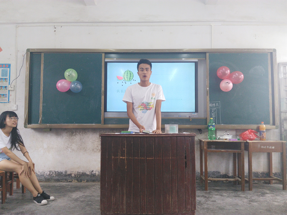 第二环节是队长发言。“霏煦”三下乡服务队队长李俊彬代表全队对夏田小学校长及其他老师的大力支持表达了衷心的感谢。同时,他也向在三下乡期间积极配合的小朋友提出了肯定和表扬。最后,他希望小朋友们能过上一个充实愉快的暑假,并在往后的日子继续好好学习,为实现自己的梦想而不懈努力!
