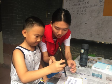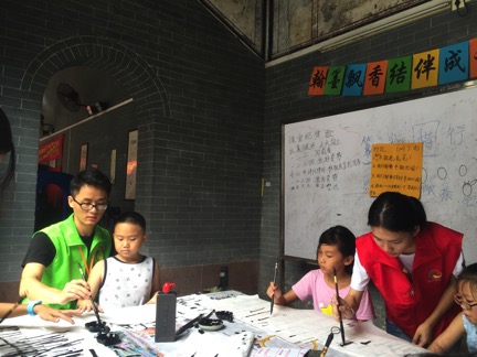 本网讯7月20日上午9点30分,我校爱飞翔·薪火起航服务队义教组书法小组准时来到贝岗村委会即邵氏宗祠,再次为十余名可爱的同学带来了第二次内涵丰富的书法课程。通过上一次的接触,同学们已很快接纳了老师,本次的课堂氛围也更加的和谐融洽。