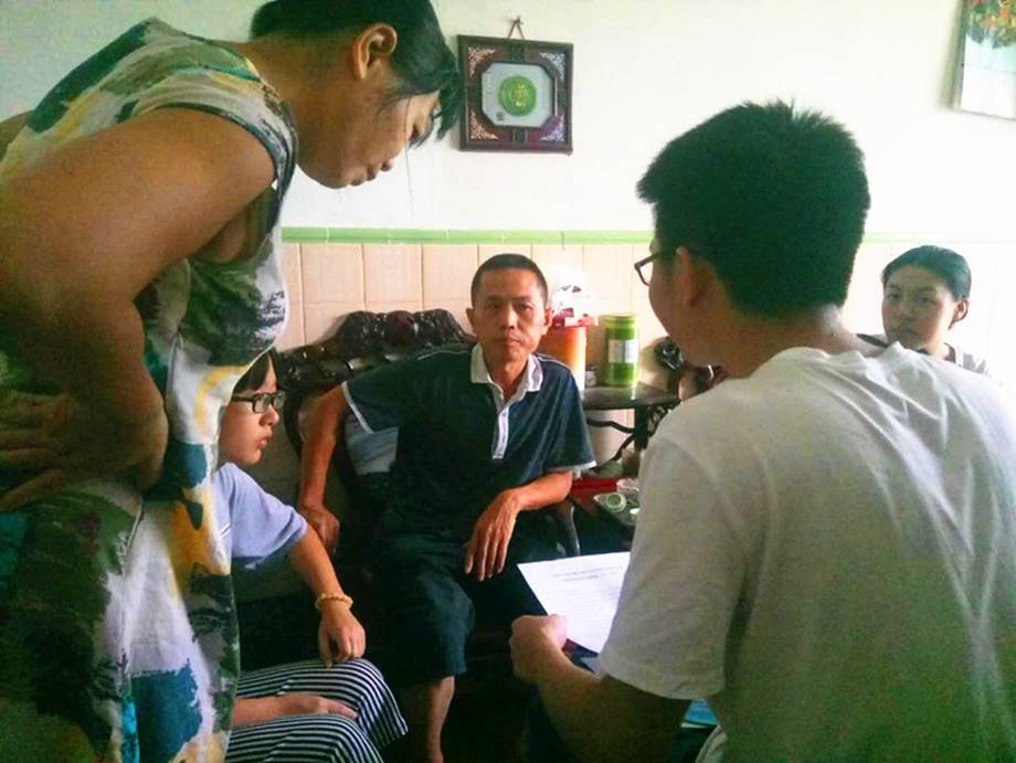 于是,调研组将采访对象落实到学生和家庭上,进一步缩小采访对象,进行户户落实式宣传。在户户落实走访初期,调研组先是走访了三个即将步入大学的高中生家庭。后期调研组又到东园镇的东桥园村开展了助学政策流动宣传活动,“自强之心”服务队全体队员出外进行户户落实式走访。