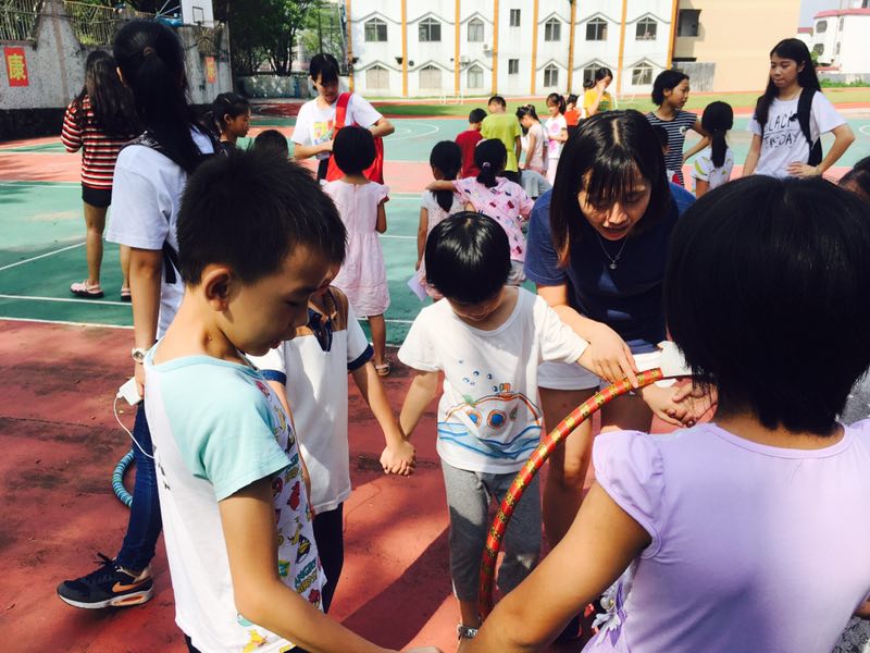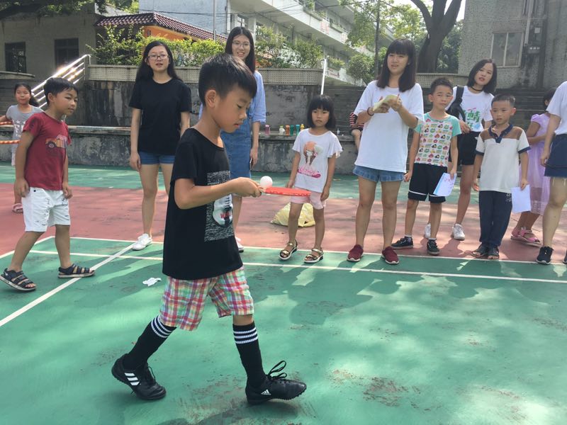 今天竹蜻蜓服务队三下乡正好一周,上午竹蜻蜓全员在基地举办游园会活动。游园会包括二人三足、跳大绳、乒乓球接力赛、点球、过呼啦圈、24点、夹乒乓球、盲人画鼻子、乒乓球过河,以小组竞赛累计总分的形式完成。其中24点吸引了许多对数学感兴趣的小朋友,他们运用自己较为基础的数学知识成功解答,对其中的奥秘感到兴奋不已;二人三足也是一个颇受欢迎的项目,孩子们在两两合作中抵达终点,对协作能力有了更深的理解。