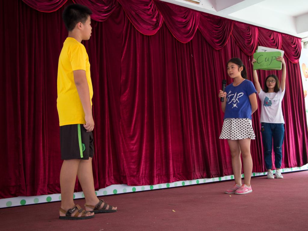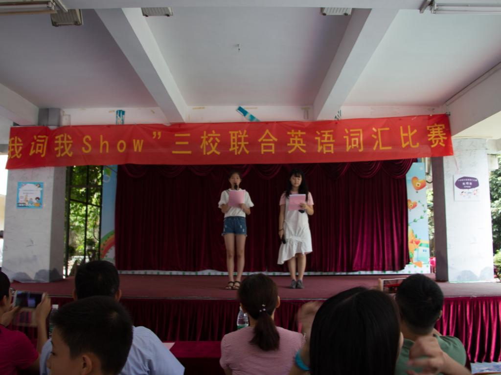 为迎接各领导老师的到来,增进队员们和小朋友的互动和感情交流,提高小朋友们的综合素质,展示商英学院三下乡的风采和特色,青马队,CCTeam, leo队以及小飞船队特意精心组织策划了精彩的“我词我Show”三校联合英语词汇比赛以及诗经吟唱表演。