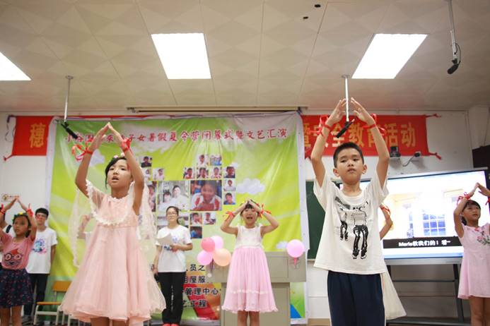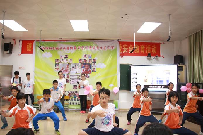 本网讯7月23日,今天是举办穗石小学暑期夏令营闭幕式的日子,也是爱飞翔•方舟起航服务队的志愿者们与同学们相处的最后一天。闭幕式上的表演精彩纷呈,同时,离别的愁绪也在师生间蔓延。