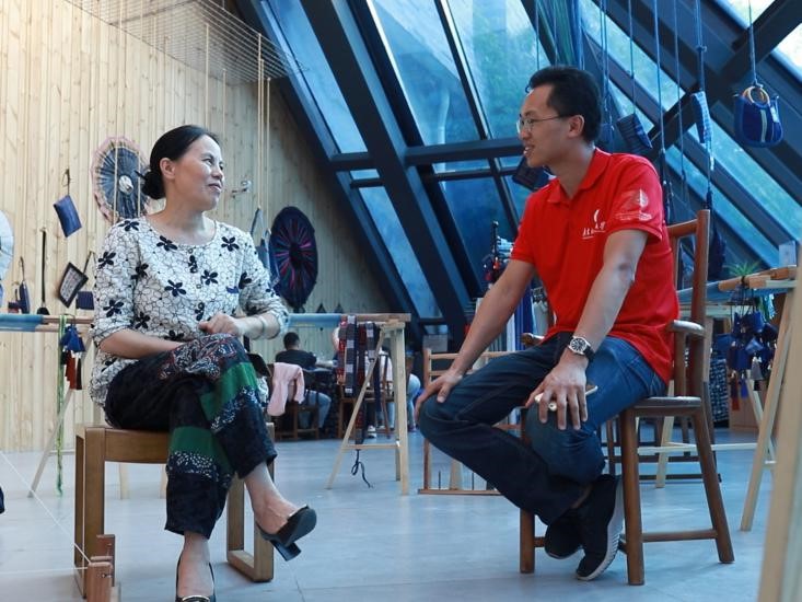 来自贵州省松桃县的全国人大代表、梵净山苗族文化旅游产品开发有限公司负责人石丽平不仅是非物质文化遗产“贵州苗绣”的省级代表性传承人,同时也是松桃苗绣“鸽子花”品牌创始人。本次对石丽平的采访,旨在增进当代青年对传承文化遗产的责任感,促进非物质文化遗产推广,推动非物质文化遗产走向年轻化,个性化,培养出年轻一代的文化传承队伍。本次采访中,石丽平介绍第五届非遗博览会中采用的空间布局,从视觉设计角度让更多人接触非遗;通过介绍苗族服装与配饰结合的特点,传达苗族服饰浪漫主义的特点;同时队员们了解到苗绣的复杂工序,体会到当代手工制作苗绣的传承精神。