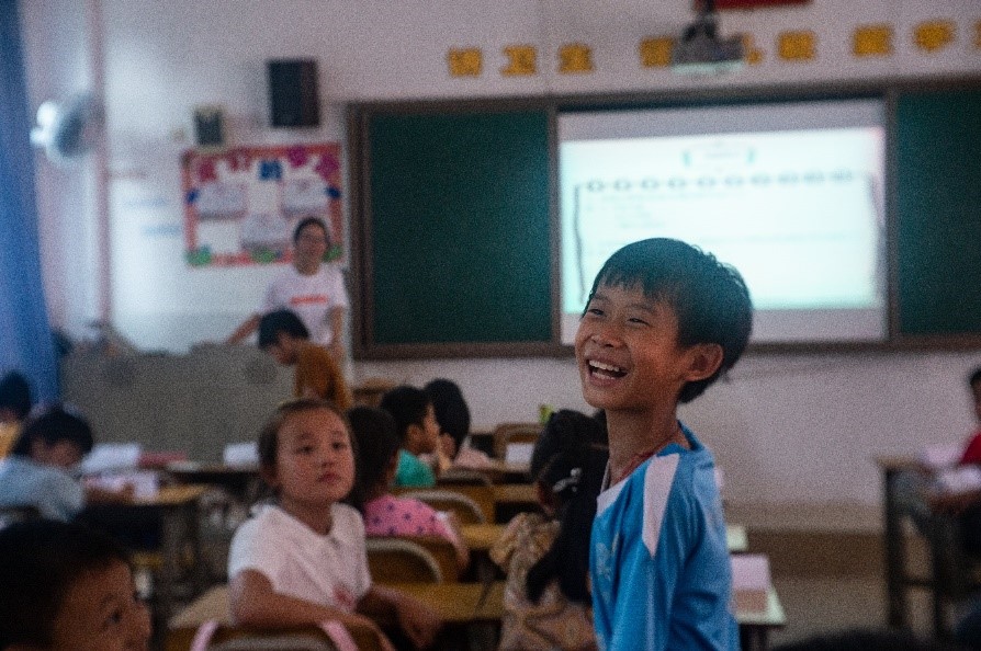 一位小同学成功抢答,获得义教组精心准备的礼品,他笑开了花,前排的女同学投来了羡慕的目光。