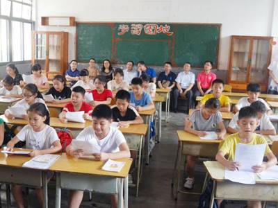 在博爱小学,刘海春一行走进由教室充当的临时宿舍,实地察看同学们的住宿环境;随后刘海春走进五年级《英语配音》课课堂现场听课,现场检验义教队员的教学效果。夏令营的小朋友为老师们送上由他们自己亲手创作的“GDUFS”创意美术作品。