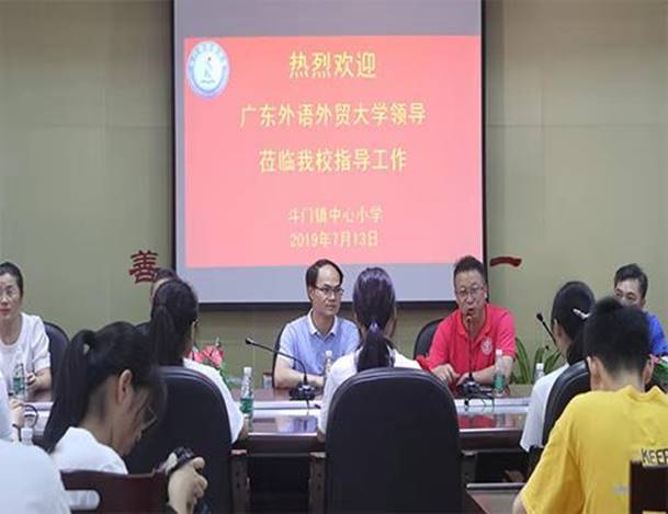 本网讯 2019年7月13日上午,三下乡“荟才循途夏乡服务队”队长符晓彤及队员与三下乡其他各队伍在斗门镇中心小学接受领导的慰问。斗门区教育局副局长汪海军对广东外语外贸大学与斗门区的交往历史进行简要介绍,广东外语外贸大学会计学院党委书记谢伟光就广东外语外贸大学及会计学院的情况,向会场其他领导和老师作简略介绍,斗门镇中心小学副校长赵发根在会上对广东外语外贸大学会计学院的支持致以感谢。