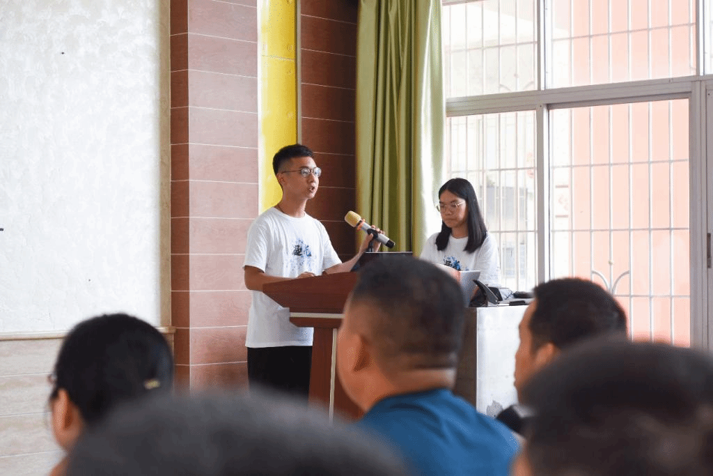 队长蔡东润对“凝光”三下乡服务队能够在英德华粤中英文学校开展这一次三下乡活动感到十分的荣幸和期待。他代表队伍向在场的华粤师生们说: “我们将从大学的视角,和同学们分享生活、分析问题,帮助大家更好的认清前进的道路,更健康的成长。接下来十四天的相处里,我们与同学们亦师亦友。我们很乐意把我们的所学分享给各位同学,为各位同学解决疑惑;也希望各位同学能及时指正我们的错误,共同进步。”随后,他更是跟学生们分享了接下来十四天的课程内容和活动安排。