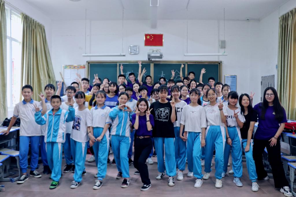 在开学典礼结束后,各服务队与自己的班级回到教室进行破冰活动,商学院团委学生会服务队在趣味纷呈的三轮游戏过后,与廊田学校初中部的同学们打成一片,大家互相了解,愉快地结束了本次的破冰活动。我们也期待着,第二天的课程能够给同学们带去更多惊喜,希望大家能够有所收获,这样的社会实践活动,才是真正的精彩万分。