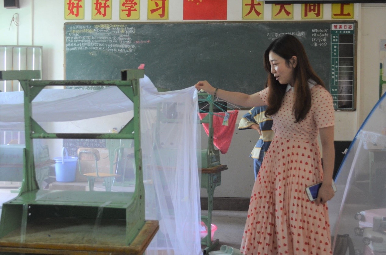 下午2时许,王馨若老师到达庄艮小学。随后在队长林溢、副队长李倩与陈佳喜的带领下,她大致参观了庄艮小学、同学们的宿舍和上课课室。