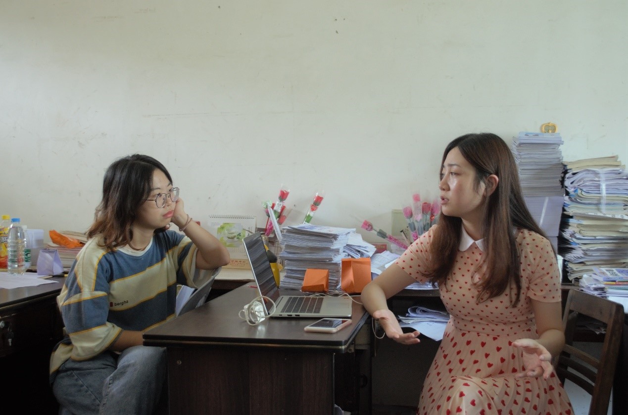 稍作休息后,王馨若老师便在一楼教室与全体队员召开座谈会。会上,王馨若老师指出,调研工作应该与教学工作相结合,把调研与课堂联系起来,与小朋友们分享调研成果。除此之外,她还鼓励调研组的同学充分利用此次调研材料,发挥它应有的用处,如果可能,还可以参加“挑战杯”。