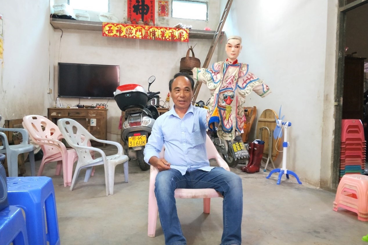 不同于何先生,杨先生年轻时师从茂名市的陈为邦以及吴川市浅水镇的柯耀林先生,算是科班出身。虽然年事已高,但他仍是吴川单人木偶戏艺人中数一数二的。他回忆道,当学徒时白天在生产队干农活,晚上则给师父的演出打杂。日复一日,年复一年,从田垄到舞台,从学徒到大师。