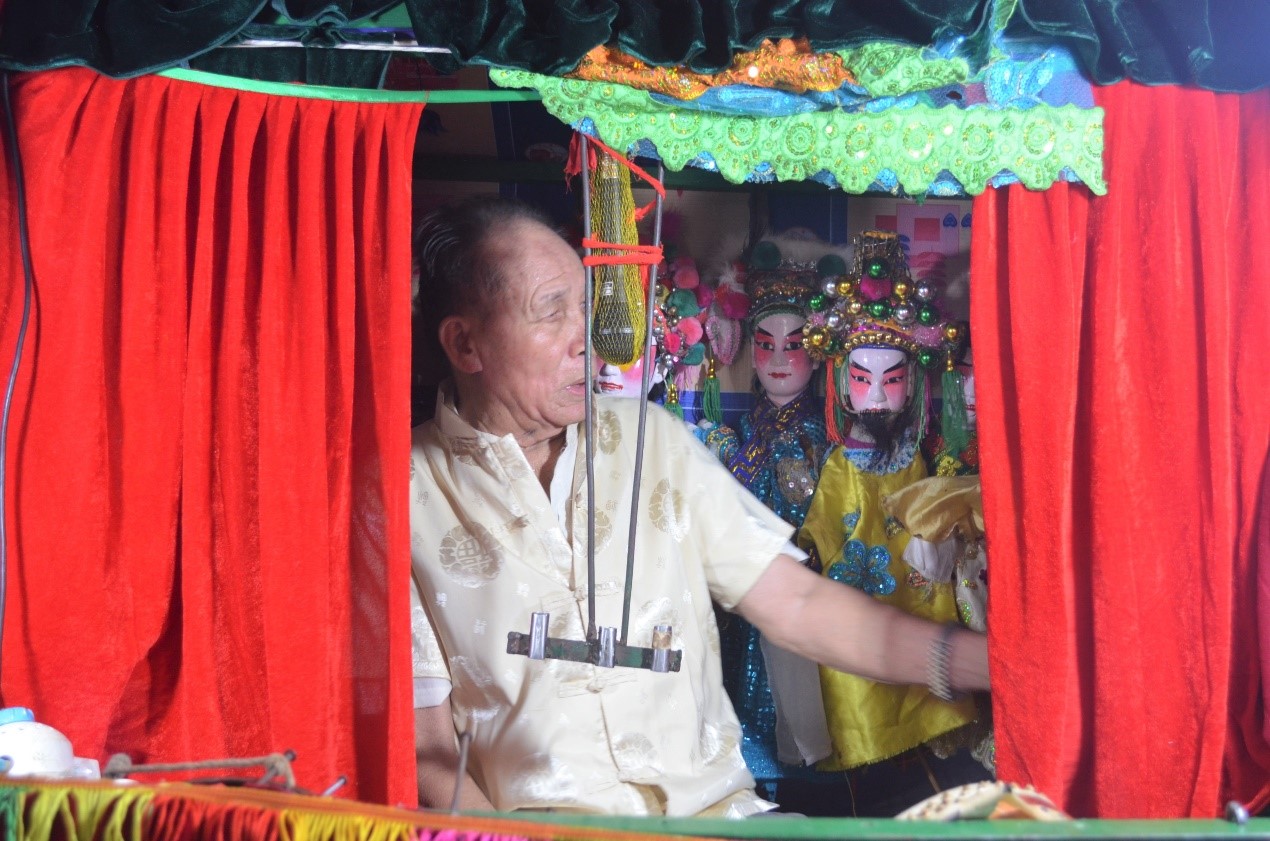 何先生年过六旬,杨先生已到耄耋之年,两位都是活跃在木偶戏舞台几十年的老艺人了。他们都是在青壮年时期开始学习木偶戏表演,随后凭借一己之力在木偶戏行业扎稳脚跟,拓宽了自己的表演舞台。