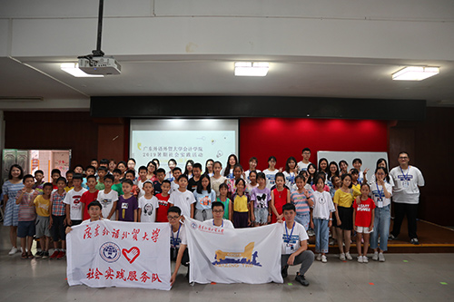 7月9日早9点,来自广东外语外贸大学会计学院的Amazing Two服务队在珠海市斗门区乾务中心小学阶梯教室举行暑期三下乡实践活动启动仪式。此次活动旨在表达我们的热情和问候,加深乾务镇中心小学学生、老师与家长对三下乡活动的认识,在交流与表演中逐渐与他们建立感情,推动三下乡活动的顺利进行。乾务镇中心小学德育处梁光亮主任、大队辅导员兼班主任庄丽芬老师以及部分家长出席了本次开幕式。