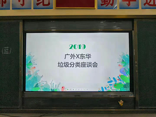 7月18日晚上19:20,“涓义”服务队队长及“涓义”服务队各小组组长、“彩云支南”服务队队长及其队员有序入场,主持人在现场播放广东外语外贸大学宣传视频预热。晚上19:30,“垃圾分类”座谈会在岑江小学四年级课室正式召开。
