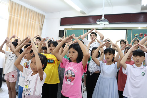 本网讯 2019年7月27日,清远英德大湾服务队全体队员与“文英啼夏”夏令营全体同学一起在大湾中学阶梯室举办夏令营闭幕式。本次闭幕式由“播音主持”兴趣班优秀学员赖家豪,陈涛,伍静怡和文玉英主持。