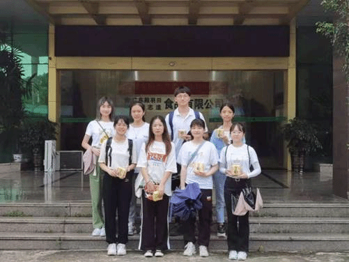 (楚天碧服务队在殿宇田食品有限公司前留影 陈希琳摄)