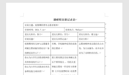 另外,通过线上访谈,我们联系了多位采访对象,涉及志愿者群体和被志愿者服务的群体,以此收集了大学生对志愿者服务的看法和建议,以及疫情下的志愿活动与平时相比有什么不一样的体验收获等信息,增强了数据来源的丰富性。