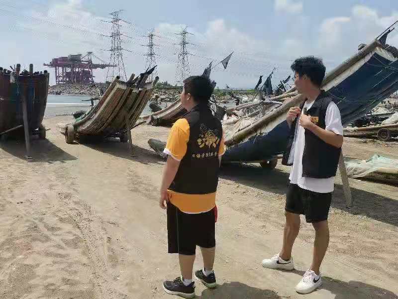 (队员们在海边了解当地渔业现状 陈梓涛摄)