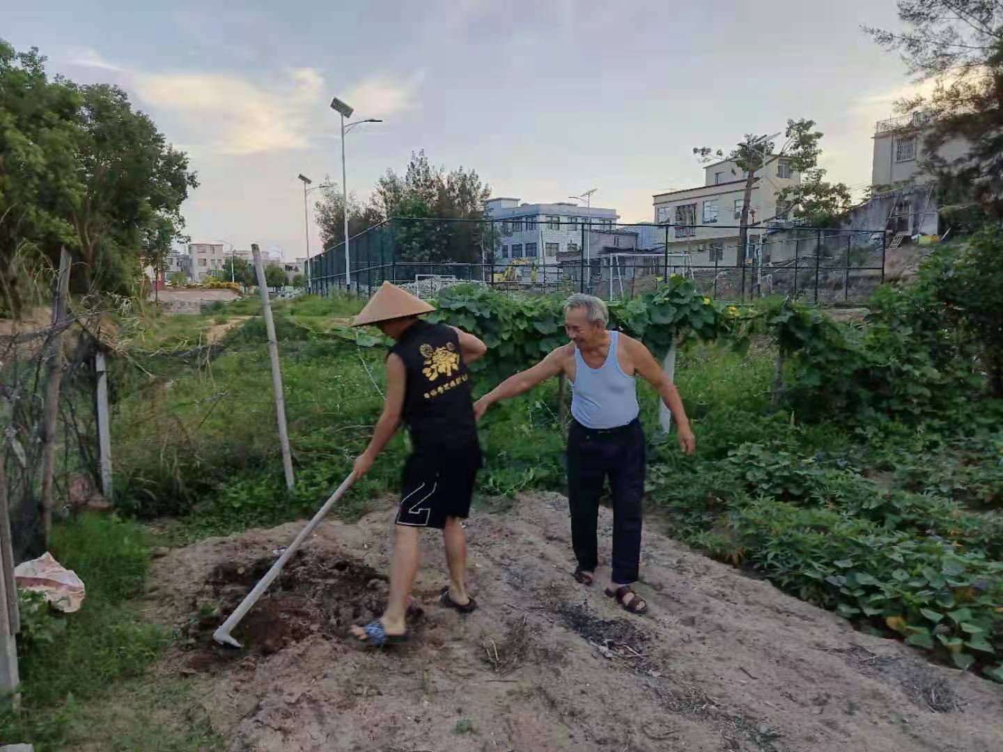 当日上午,线下调研小组决定直接深入观察探访村民们日常的劳作生活。成员们在田地间穿梭寻找忙碌的村民,询问村民们靠何种方式谋生,日常劳动生产中是否遇到什么问题,以及当地的农业发展现状如何。下到田地与村民交谈之余,小组成员还主动帮助村民干农活,通过亲身体验了解到了农民的辛苦与不易。另外,饶平县靠海,因此也有许多靠海的农村是以渔业为主要产业的。告别田地的村民,线下调研小组的成员们来到了海边,听当地的渔民与村民讲述他们关于渔业生产的故事,以此来解沿海农村的特别之处。