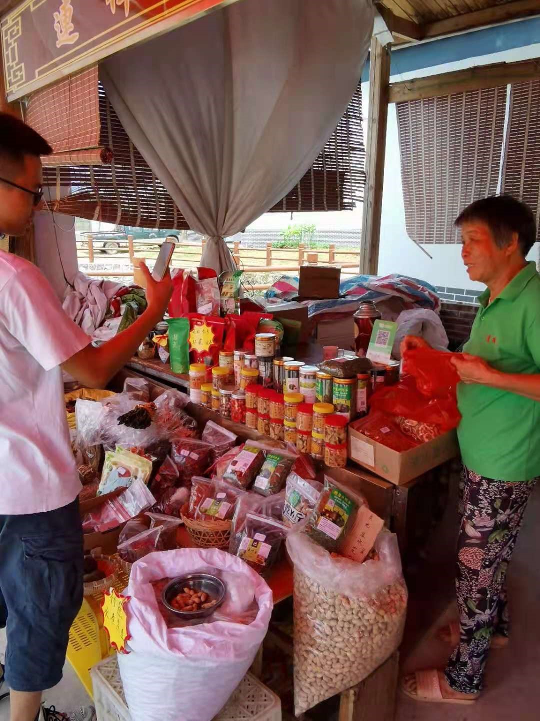伴随着轻快的步伐,走在村中新修的大路之上,一位在街边售卖着村中土特产的老奶奶吸引了我们的目光,我们走进一看,别看奶奶的摊位面积不大,但是各种零售的特产商品可是一有尽有,飘香四溢的瓜子,唇齿留香的茶叶,清脆爽口的花生琳琅满目。我们走上前去与她攀谈,表明了我们的身份与来意,在得知我们是广外的学生之后热情地给我们倒了好多当地茶叶泡的茶,还给我们抓了瓜子花生让我们品尝。盛情难却,我们连忙道谢品尝起来。茶香甘甜,扫去了我上午被太阳暴晒后的疲倦,零食爽口,为在连樟村在我们心中的形象更加加分。我们不禁问道:“奶奶,最近的生活情况还好不好,零售的生意好不好?”,奶奶笑着告诉我们,自从村里党员干部组织大家一同脱贫攻坚,大家坚定跟着党的号召走,辛勤劳动,现在大家的生活质量都有了很大的提升。环境的治理卓有成效,渐渐地,连樟村的旅游产业也发展的越发成熟,游客也随之越来越多,村中还有许许多多像她这样的零售商,生意相比于过去,都变得更加兴隆起来,这也与习近平主席的“绿水青山便是金山银山”相得益彰。之后,她还和我们讲述连樟村村民丰富的傍晚生活。从她的描述之中,我能想象,当落日的余晖藏入山底,夜晚的星星却还未闪耀之时,就在老奶奶档口旁配有路灯的广场上,小孩在嬉闹,妇女们在音乐的节奏下翩翩起舞。民生安乐,一片其乐融融的景象,想必这就是人们所向往的田园生活吧,但是要落实它却不仅是一个决心的问题,更是一个技术的问题。社会是一个讲究分工和联系的整体,为了让连樟村融入高速发展的经济必然要实现连樟自身的优势与现代经济的对接。继农业调整之后,连樟村的丰富农业资源得以解放,特产农副产品可以吐露芳香,建立起当地的资源与外界的正向交换与循环。