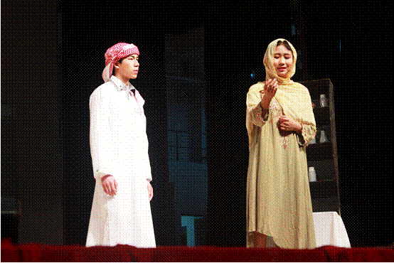 本网讯 2016年5月5日晚,东方语言文化学院第十一届“凯捷”杯专业戏剧大赛在云山会堂隆重举行。泰语、阿拉伯语、日语、印地语、印尼语、老挝语等六个剧组带来了精彩绝伦的演出,场下观众直呼过瘾,掌声与欢呼声此起彼伏,响彻整个云山会堂。