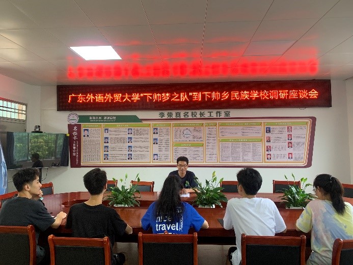本网讯 7月2日上午,阴雨蒙蒙,乌云遮挡住了阳光,冲刷走了一部分炎热,却冲刷不走我们下帅梦之队的热情。我们从广州南站开启我们的旅程,乘坐动车前往调研地点——肇庆怀集。动车上时间虽短,却隐隐拉进了大家的距离,让我们更加亲近、团结。到达怀集高铁站后,民族学校的老师接送前往下帅乡。对方老师的热情接待,映射出当地人的淳朴热情,让我们感受到了家的温暖。