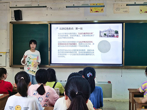 实践团成员从自身实际经历出发,带领学生们云游红色景点、感悟红色文化,一起重走习近平总书记在潮汕的考察路线,“云”游路线经过三站——汕头开埠文化陈列馆、潮州革命烈士纪念碑、凤凰山革命纪念公园,实践团成员为孩子们介绍了景点这几年来的变化,并分享了自己实地参访的感受,孩子们对景点背后的历史故事深感兴趣,在课程上积极地与实践团成员互动,课程取得了不错的效果。