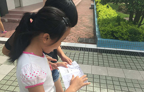 在“趣味运动会”结束之后,进行“低配版定向越野”,总共持续一个小时。这个活动依旧进行分组,总共分为四个组,每个组跟有一名义教组组员。本以为在“趣味运动会”之后,小朋友会筋疲力尽,没想到他们依旧体力充沛、元气满满,在宣布比赛开始后,便一窝蜂冲出体育馆。偌大的学校里,每一个角落里都有他们奔跑的影子,操场草地上、篮球场上、教学楼走廊里、弯曲的小道上……