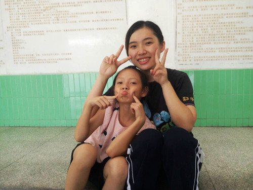 每位老师在完成自己的教学任务之余,都会和小朋友们交流心得、玩耍。课后副队长颖佳和小朋友们讨论上课教学的内容,帮小朋友巩固所学的知识。她脸上的笑容,感染了每一位小朋友,令大家对这个快乐的老师特别喜欢。她每天都会关心小朋友们的生活,比如饮食方面是否适应,课堂内容感觉是否良好,与同学相处是否愉快,大家对这个热心的姐姐都特别的热情和喜爱。虽然教学任务是繁重的、辛苦的,但是和小朋友们相处的时光是快乐的。小朋友们天真活泼的样子,热情洋溢的笑容是这个炎炎夏日里我们内心的一抹清流,让我们心里倍感舒适和欣慰。